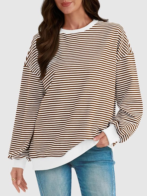 Oversized Sweatshirt for Women 2024 Fall Crewneck Striped Long Sleeve Shirts Preppy Top Y2K Outfits