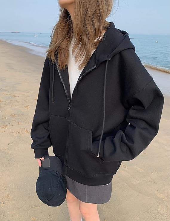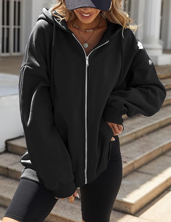 Women's Oversized Zip Up Hoodies Fleece Jacket Casual 2024 Fall Winter Sweatshirts Drawstring Y2K Hoodies Teen Girls
