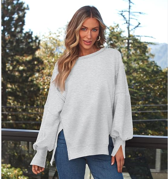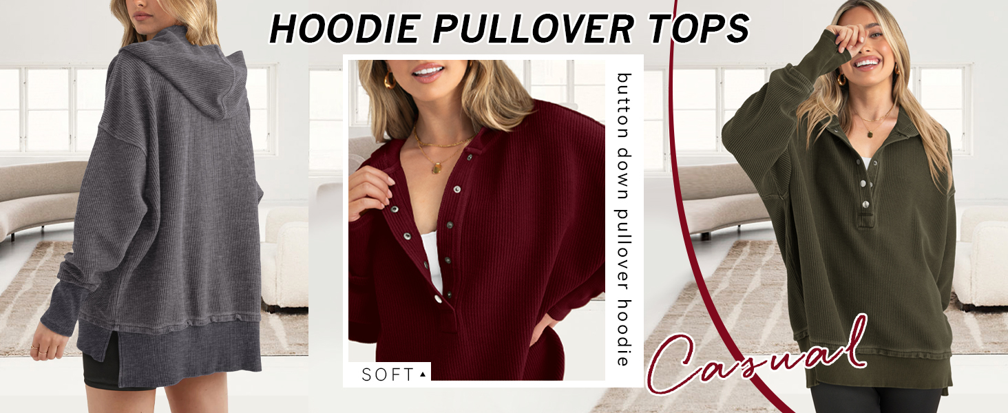 Womens Fashion 2024 Long Sleeve Hoodie Oversized Button Up V Neck Sweatshirt Side Slit Casual Pullover Tops