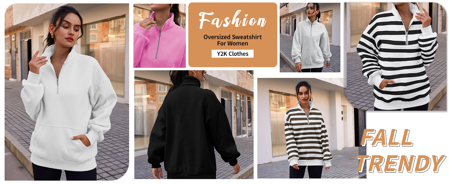 Womens Zip Up Hoodies Oversized Sweatshirts Preppy Clothes Fall Teen Girls Outfits Fashion Crewneck Pullover