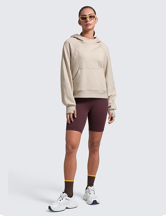 Womens Fleece Mock Neck Hoodie Oversized Pullover Long Sleeve Casual Workout Hooded Sweatshirts with Thumb Hole
