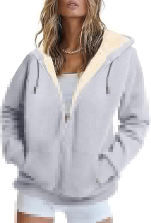 Womens Fleece Hoodies Zip Up Casual Lined hoodies for Winter