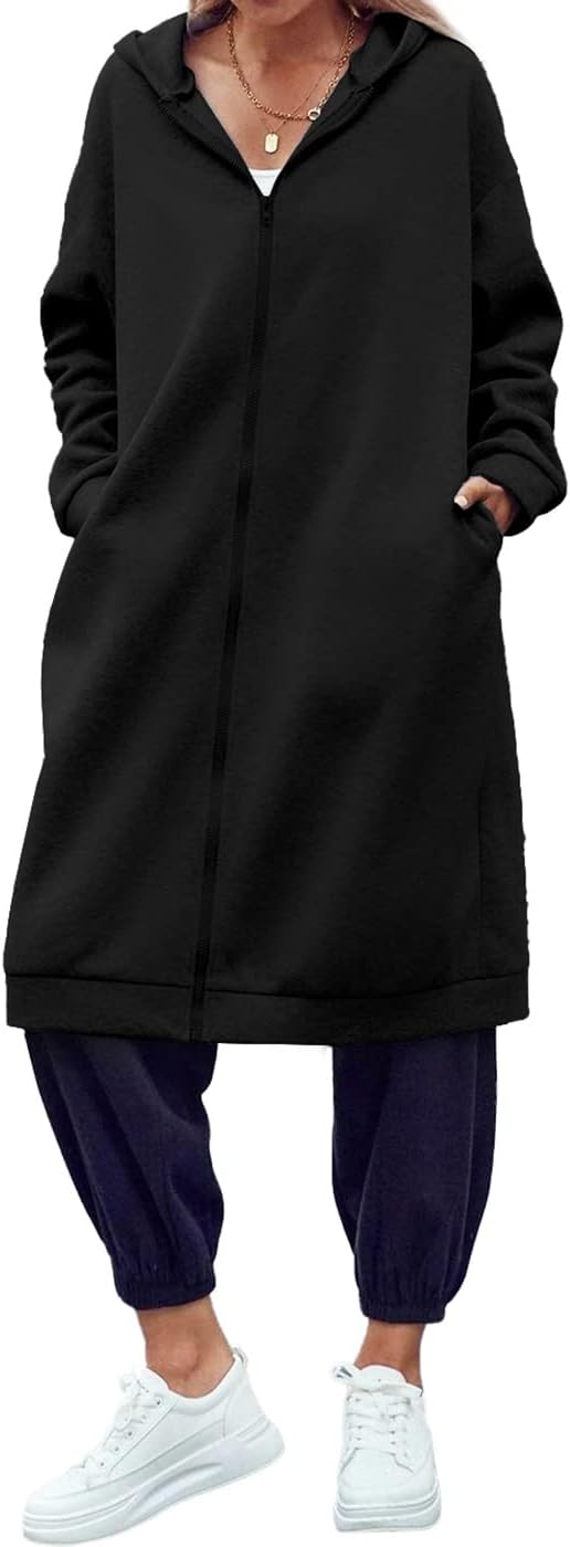 Women Zip Up Hoodie Casual Long Hoodies for Women Tunic Sweatshirts Jackets Winter Coat with Pockets