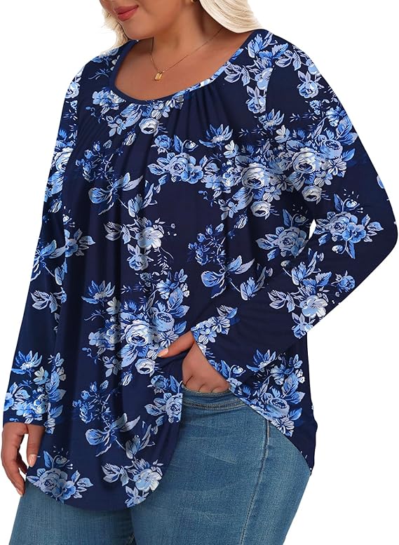 Women's Plus Size Tops Long Sleeve Shirts Fall Tunics Loose Comfy Blouses 1X-5X