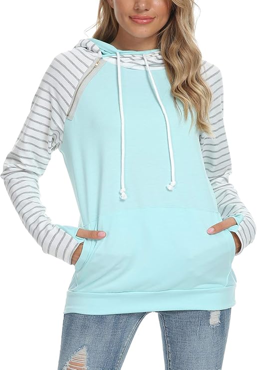 Women Hoodies Pullover Casual Thin Sweatshirts with Pockets Loose Fit Long Sleeve Drawstring Design Hoody Sweatshirt