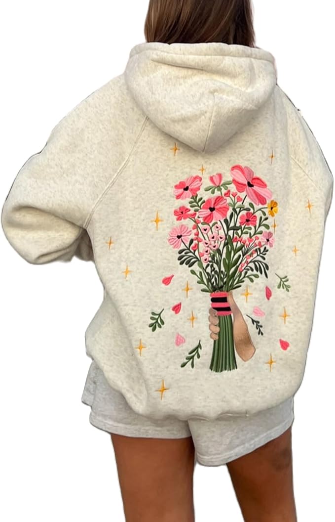 Oversized Hoodies for Women Plus Size Drawstring Graphic Hoodie Loose Preppy Sweatshirt with Pocket Womens Pullover