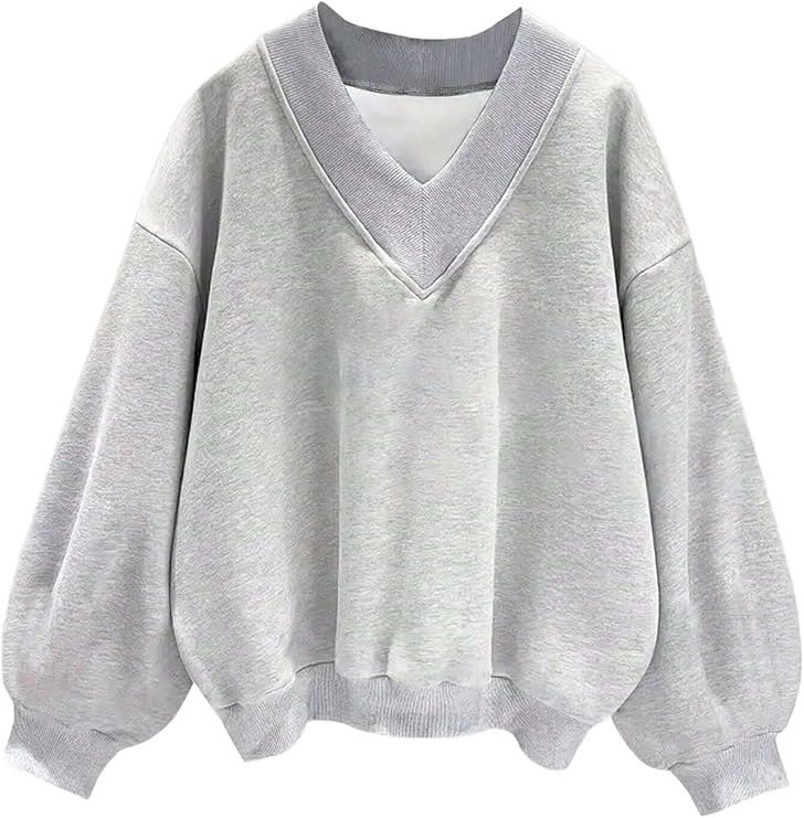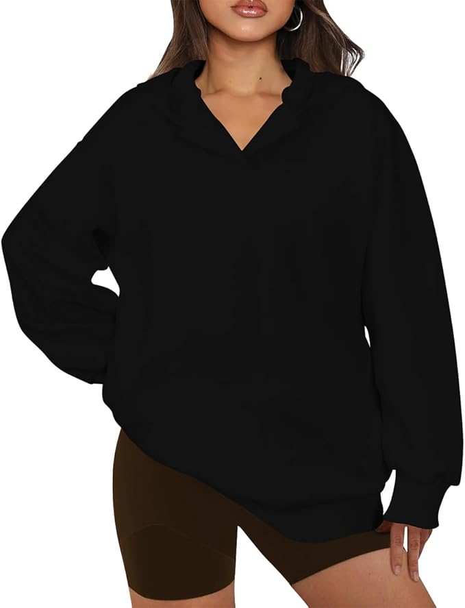 Women Oversized Sweatshirts V Neck Pullover Long Sleeve Hoodies Tops Casual Fashion Outfits Clothes 2024