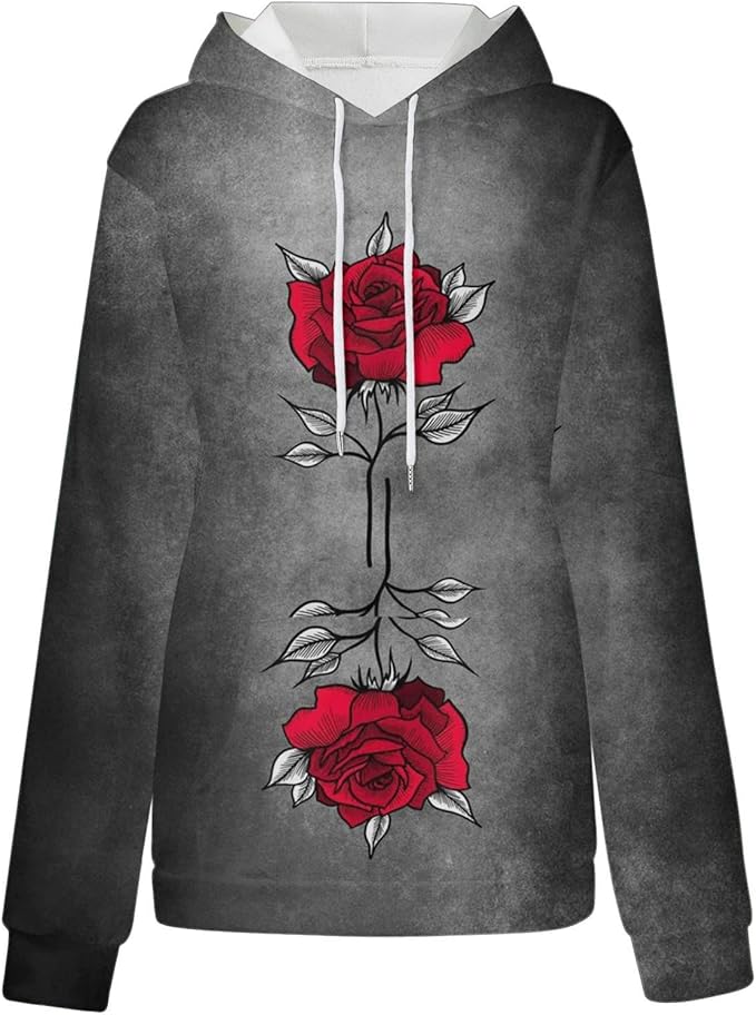 Womens Sweatshirt Graphic Hoodies Letter Print Casual Long Sleeve Drawstring Pullover Tops with Pocket