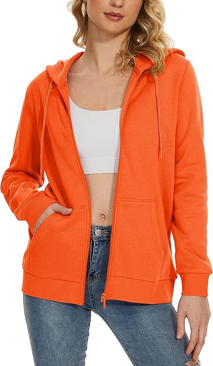 Women's Fleece Lined Zip Up Hoodies Casual Hooded Jacket Workout Full Zip Sweatshirts Pocket Coats