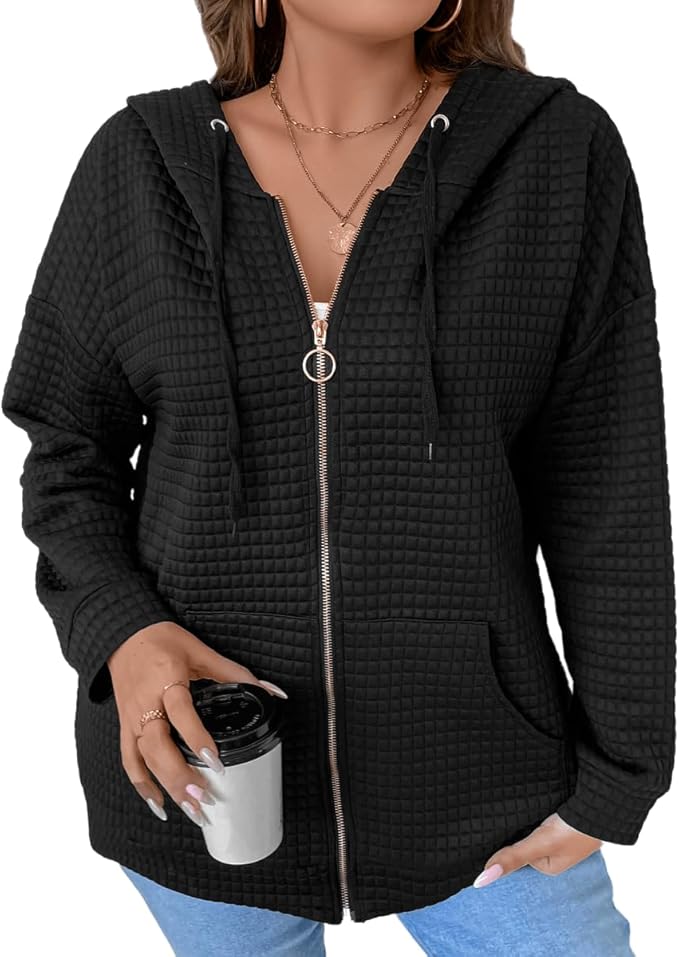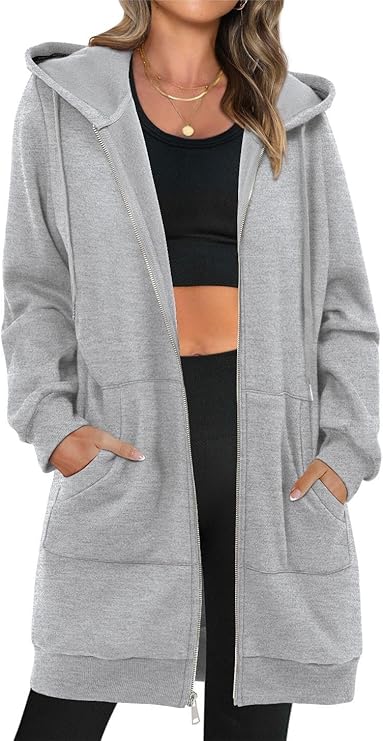 Women's Zip Up Hoodies Oversized Fleece Long Sleeve Sweatshirts Casual Fall Jacket Coat with Pocket(S-3XL)