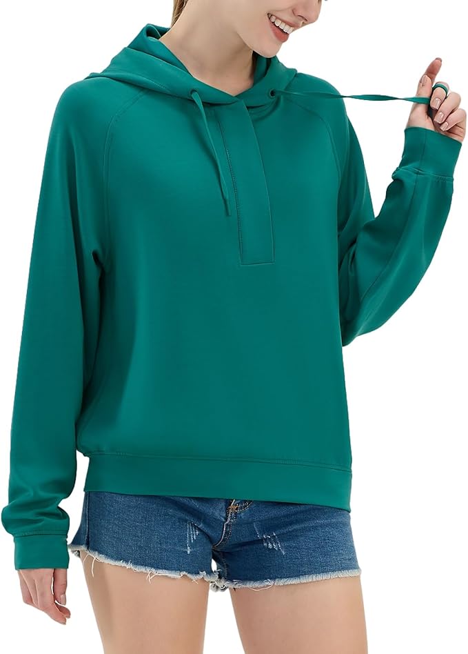 Womens Fleece Lined Half Zip Hoodies Pullover Oversized Long Sleeve Casual Workout Sweatshirts with Thumb Holes