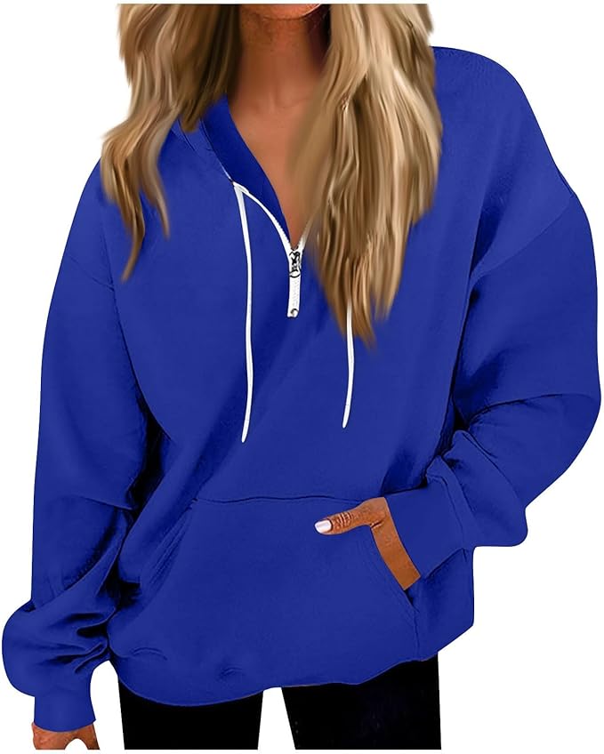 Oversized Zip Up Hoodie Women Fleece Quarter Zip Pullover Sweatshirts Casual Long Sleeve Top Fall Clothes w/Pockets