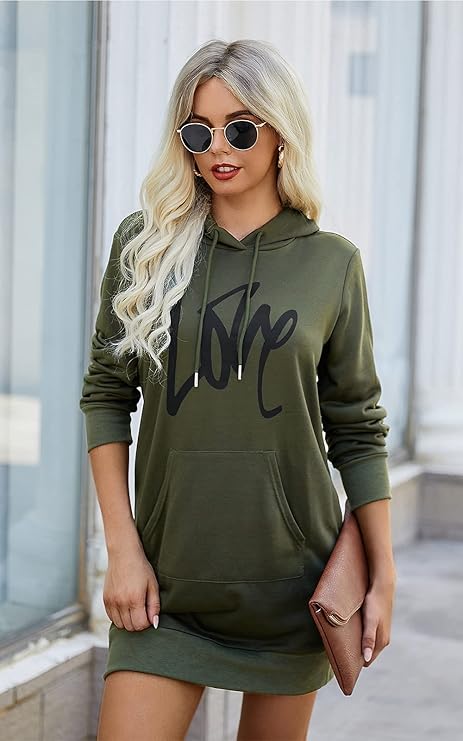 Women's Hooded Sweatshirt Drawstring Lightweight Long Sleeve Pullover Hoodie Dress