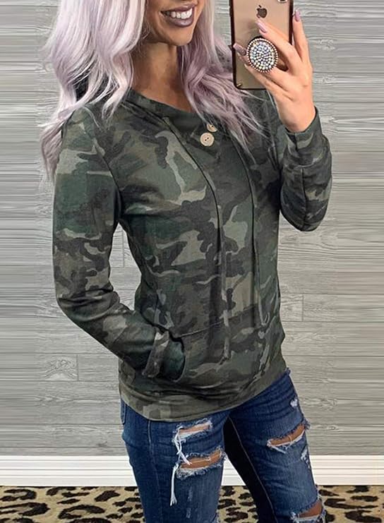 Women's Pullover Hoodies Tops Casual Button Down Drawstring Hooded Long Sleeve Sweatshirts With Pocket