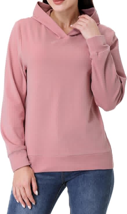 Womens Long Sleeve V Neck Hoodie Sweatshirts Lightweight Pullover Tops